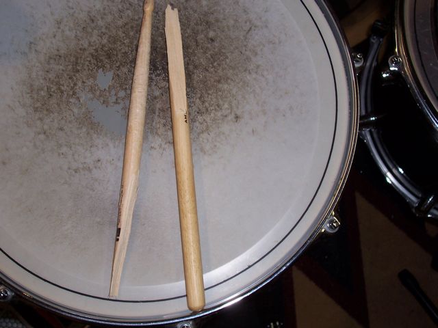 IN MEMORIUM: A drum stick (pictured) fought the good fight to the bitter end, but lost its battle during the recording process for this song. A brave warrior, indeed…